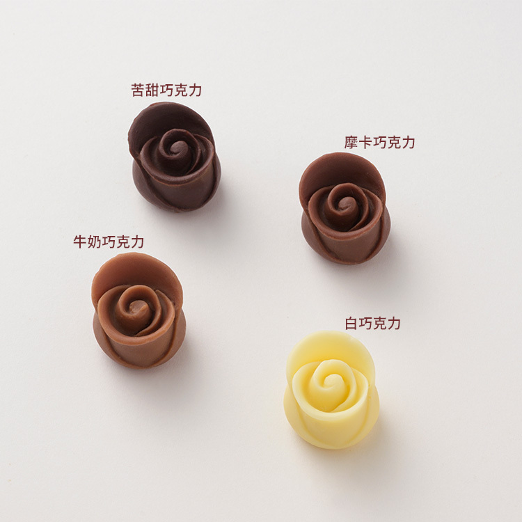 以立體玫瑰花苞手工打造,呈現細緻如花束般的巧克力禮盒。